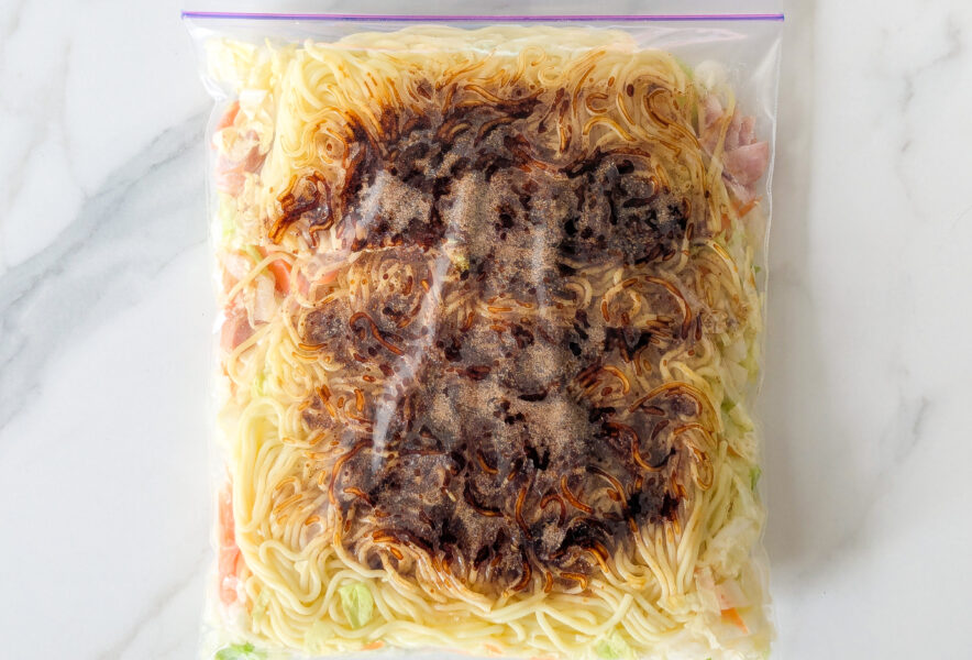 具材と調味料を1セット。食べる時は袋から取り出して電子レンジで温めるか、フライパンで蒸すだけの簡単調理。