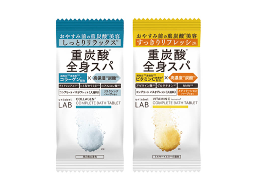 〝重炭酸(※)全身スパ〟で、おやすみ前にリラックス。「アンレーベル ラボ」バスタブレット2種を3人に